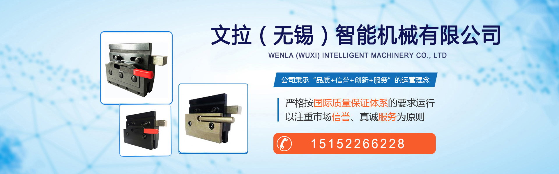 文拉(无锡)智能机械有限公司是一家坚持创新、追求精益生产的专业折弯机夹具生产企业。主要生产:折弯机快夹,折弯机普夹,折弯机夹模板,双开双面连接板等。生产出的夹具精度极高,质量优越。企业拥有一批高素质技术的员工,融合了国内外先进的工艺技术,同时具有完备的产品质量检测监控体系。因此,我公司生产的折弯机上模夹具每一付都可以任意互换,安装上模时速度快,精度高,易调整到位,为生产折弯机厂家缩短劳动工时,提高生产工作效率。内侧配装耐磨胶条,在安装折弯机上模短刀时,易夹紧,不松动,不掉刀等优点。本公司产品以质量为本,价格合理,闻名业内。我们期待着与您的客户合作!