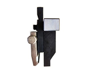 折弯机夹模板由钩体和支撑臂组成,支撑臂的一端活动套装在钩体长臂上,另-端与钩体的钩端相对。此类折弯机夹模板采用钩体及钩体上套装支撑臂的设计,该新型结构简单,使用安全可靠;使用时仅需用钩体钩住一端,轻轻敲打支撑臂的下端即可锁定相应尺寸。同时由于钩体长臂的弧形设计,使加持力更大;支撑臂套装孔的设计尺寸与钩体长臂截面积相应,便于使用同时叉不至于脱落;支撑臂下端活动夹板的设计使使用时更容易找到加持面,安全稳定。是保证建筑施工质量、缩短工期、提高工作效率、降低工人施工强度的理想工具。